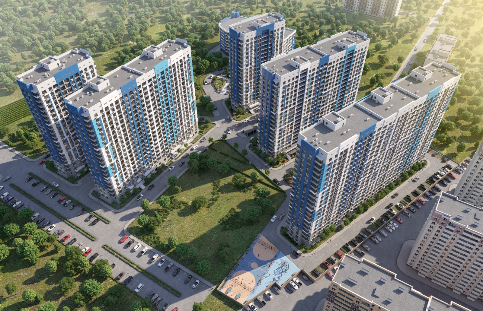 ЖК «Бархатный сезон» — это мини-город, где можно чувствовать себя комфортно и безопасно не только в квартире, но и за её пределами: в подъезде, во дворе, на детских площадках и улицах.