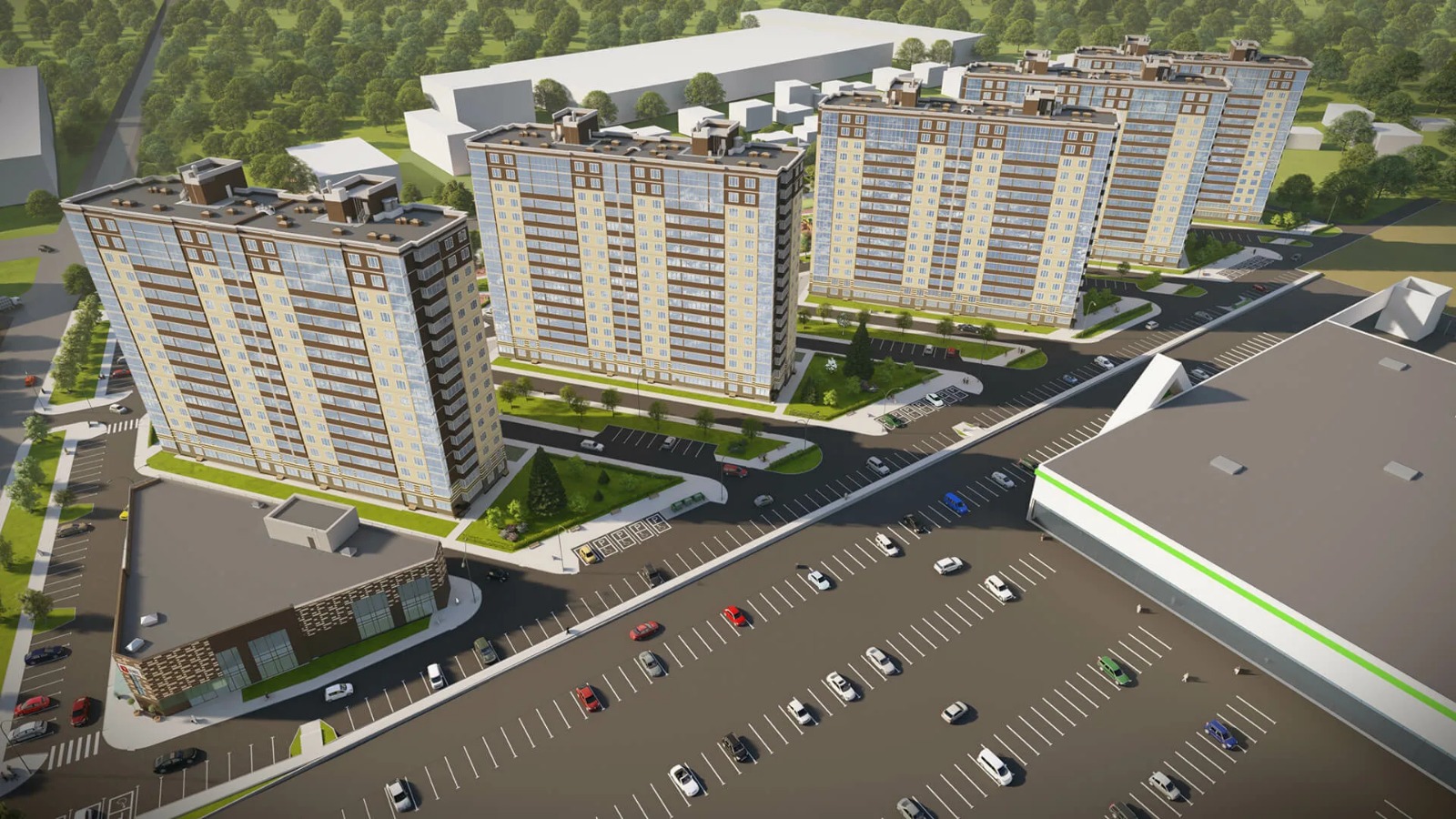 ЖК «Парковый» – это современные дома комфорт-класса, отличный вариант для постоянного проживания в оживлённом микрорайоне курортного города.