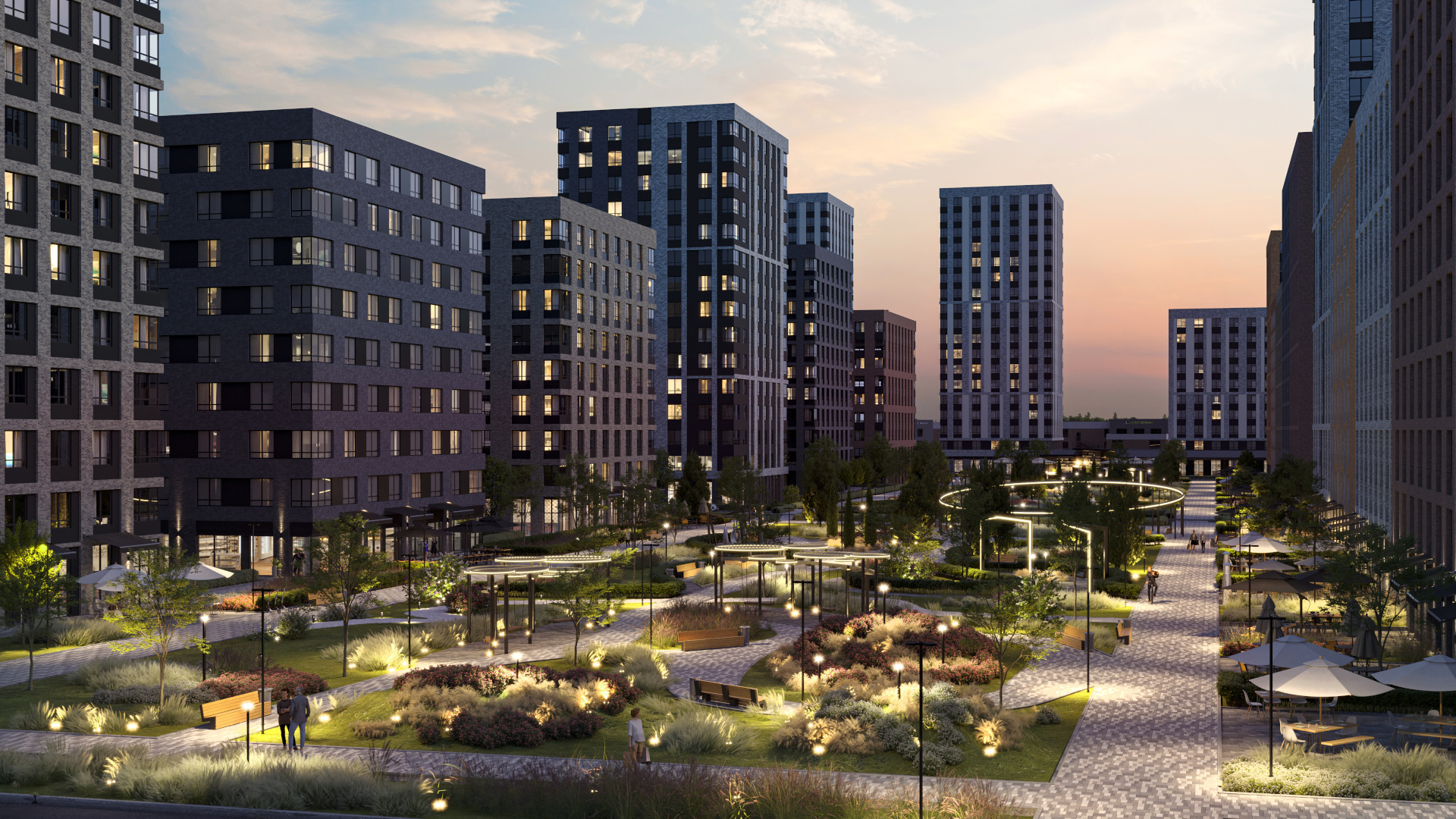 до центра города. По-настоящему продуманная инфраструктура и удобная транспортная сеть, детские площадки и места для семейных прогулок.