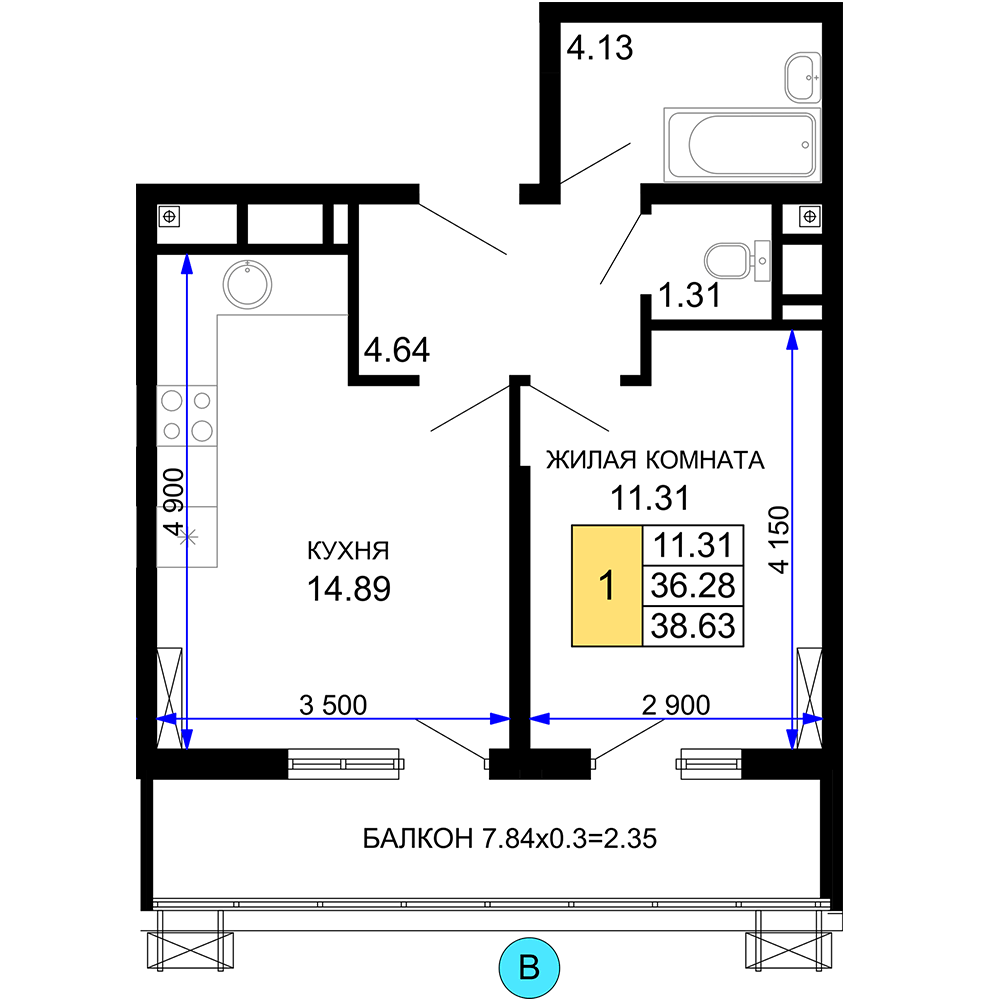 1-комнатная квартира